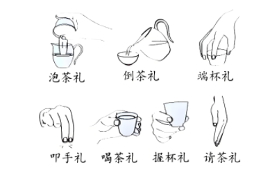 如果你的小侄子小外甥学了茶艺给你添茶喝,记得伸出右手食指或中指在茶桌上叩一下,如特别欣赏晚辈,可叩三下。