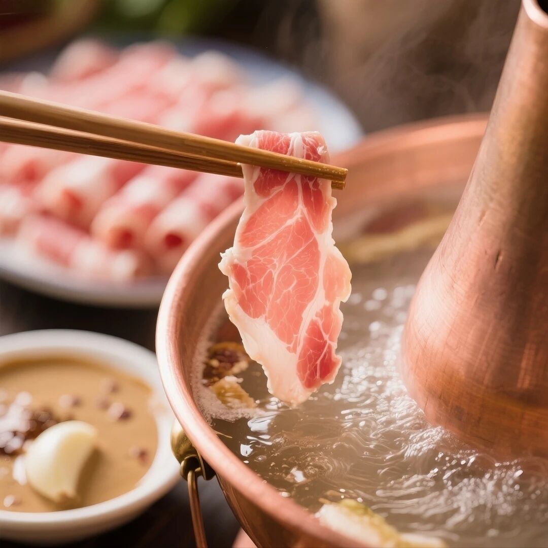 北京的羊肉大多来自内蒙古,每年冬季都是享用内蒙羊肉的最佳季节。正宗北京涮羊肉讲究使用手切鲜羊肉,尤以回民师傅的手艺最佳, 讲究“薄如纸、匀若浆、齐似线、美如花”,好的羊肉片必须是刀工齐整、轻薄不散,能做到涮到锅里无异味、无血沫,即使不沾酱料也鲜甜无比。