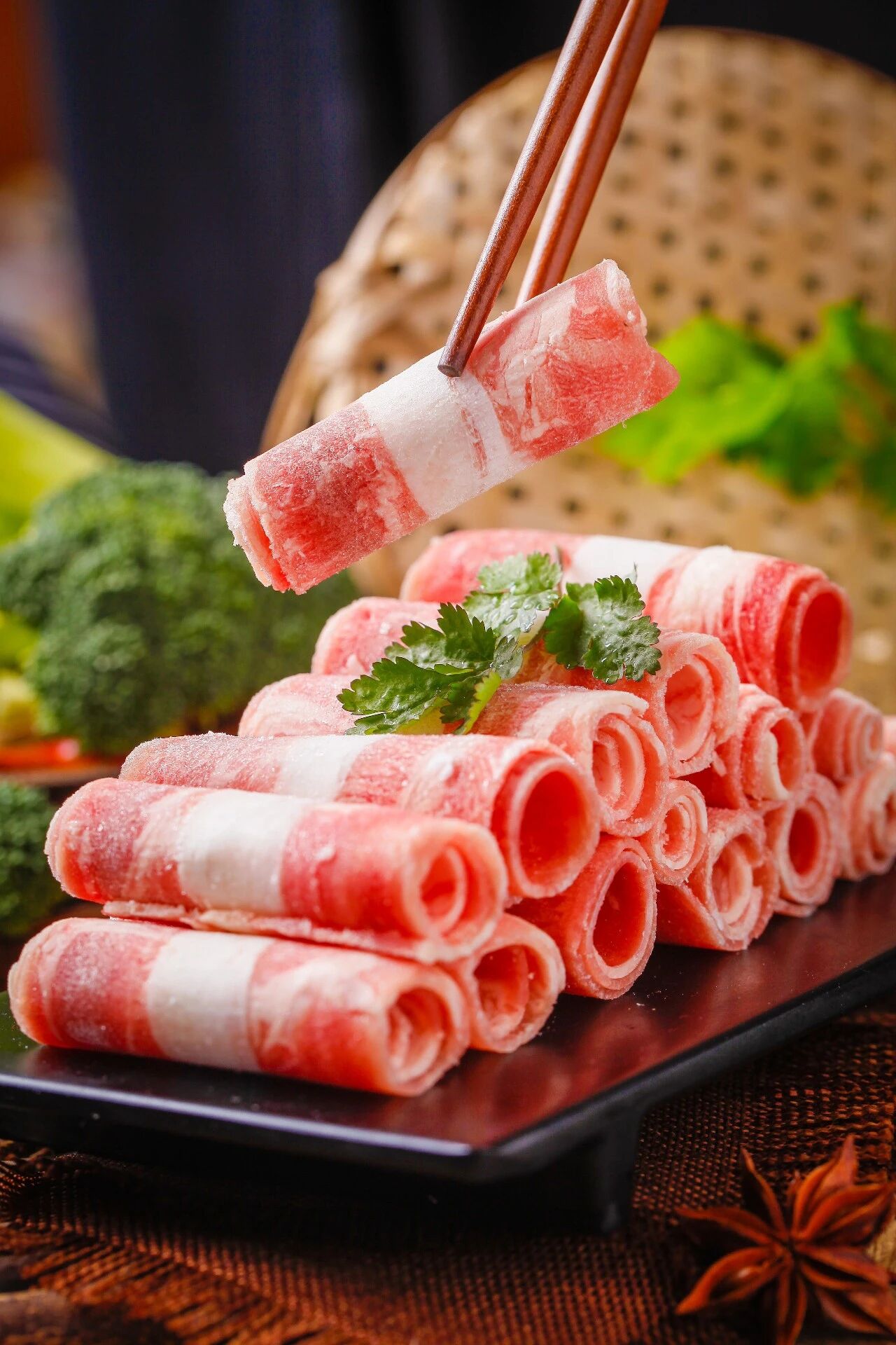 如果没有片肉师傅的技艺也没关系,肉铺一般提供代切服务,再不济拿回家冻一下,自己也能切出薄薄的羊肉片。