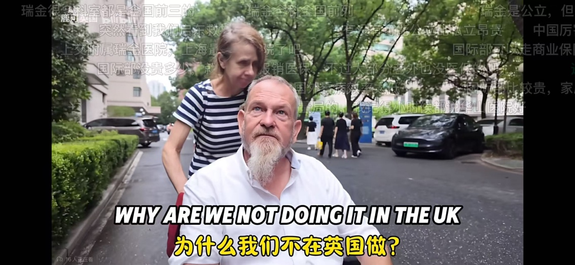 2024年,一位英国博主在B站发表《英国爸爸在中国看病,效率爆表,吓到腿差点好了!》的短视频,详细记录他的继父因为健康问题无法站立,在英国迟迟无法确定病因,预约核磁共振竟然排队到26个星期之后,即便拍个X光片,也要等长达8周。最终他带继父来中国上海看病,结果不但迅速确诊病因,还获得了完整治疗方案。