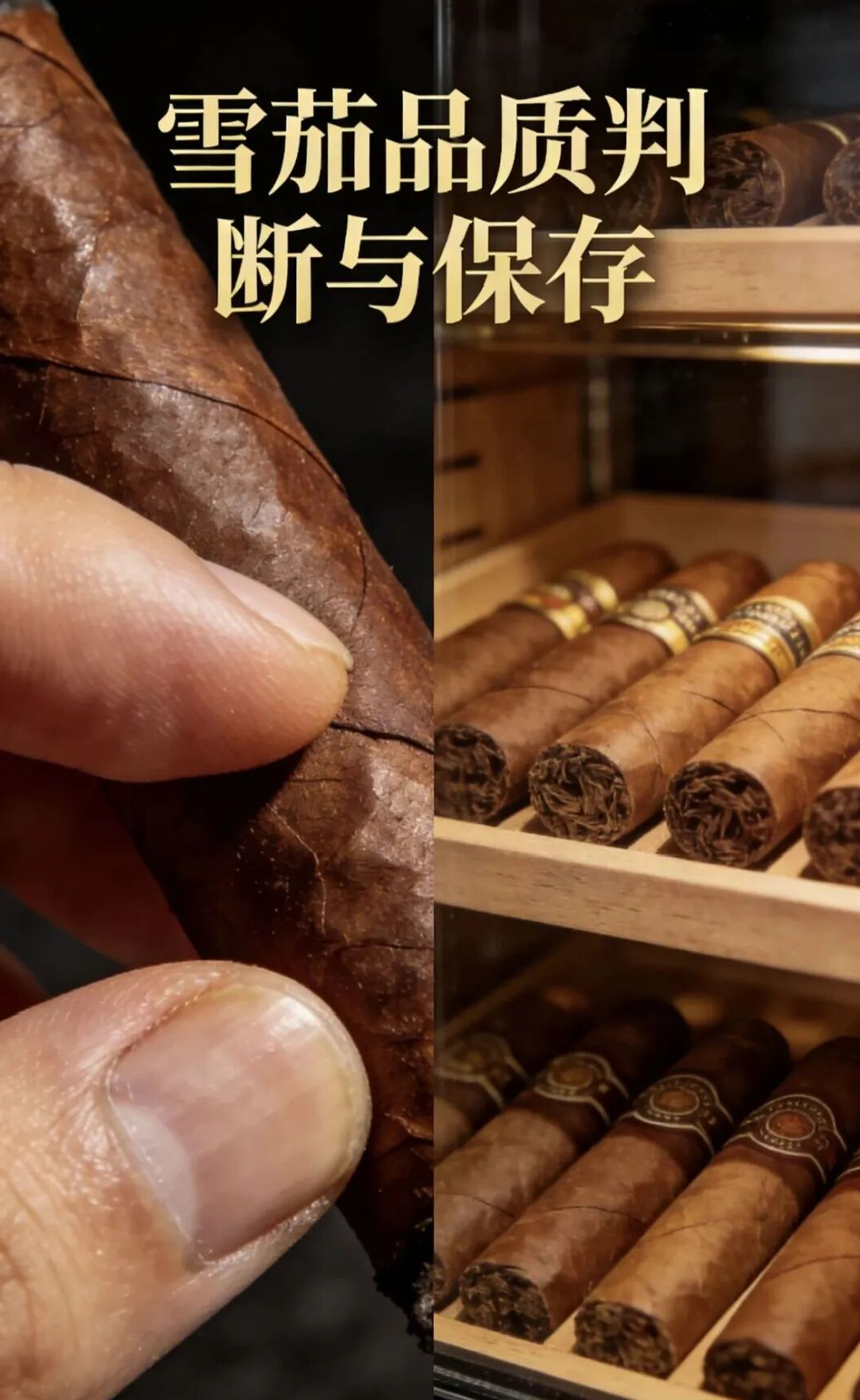 一支优质的雪茄,茄衣光泽自然、触感柔韧且富有弹性,并散发天然香气。保存时,切记避免过度干燥或潮湿环径,最好使用恒温恒湿的雪茄柜,让它在稳定环境中保持最佳状态。