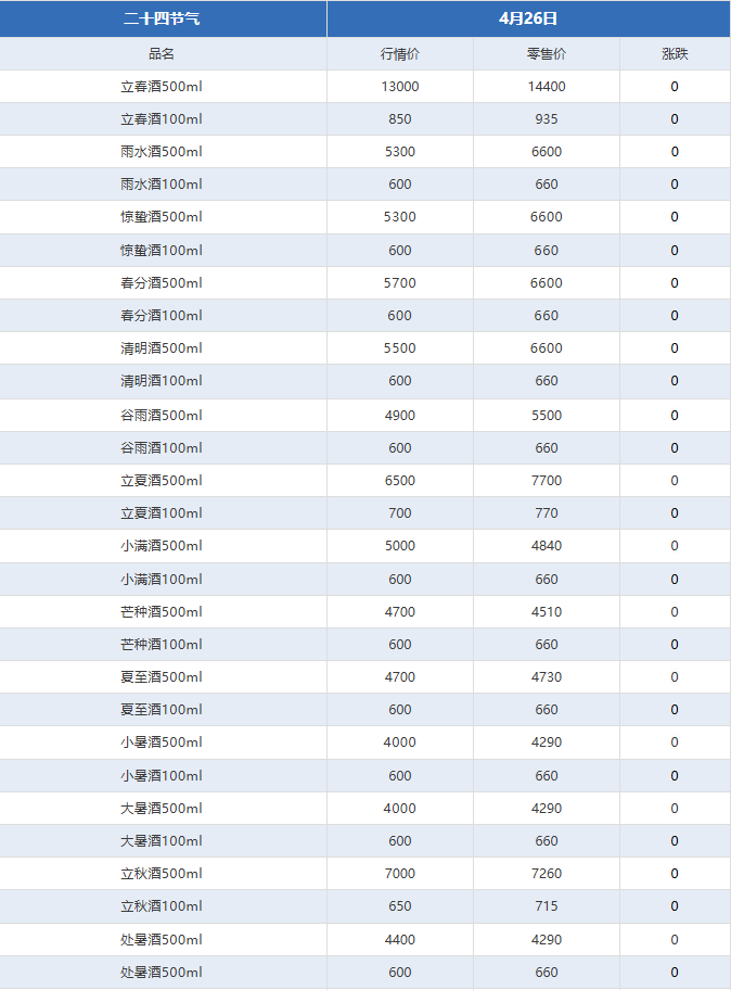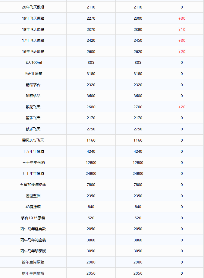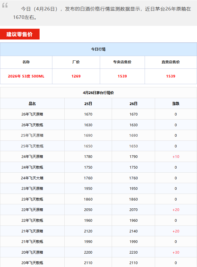 飞天全线上涨!茅台酒4月26日行情价